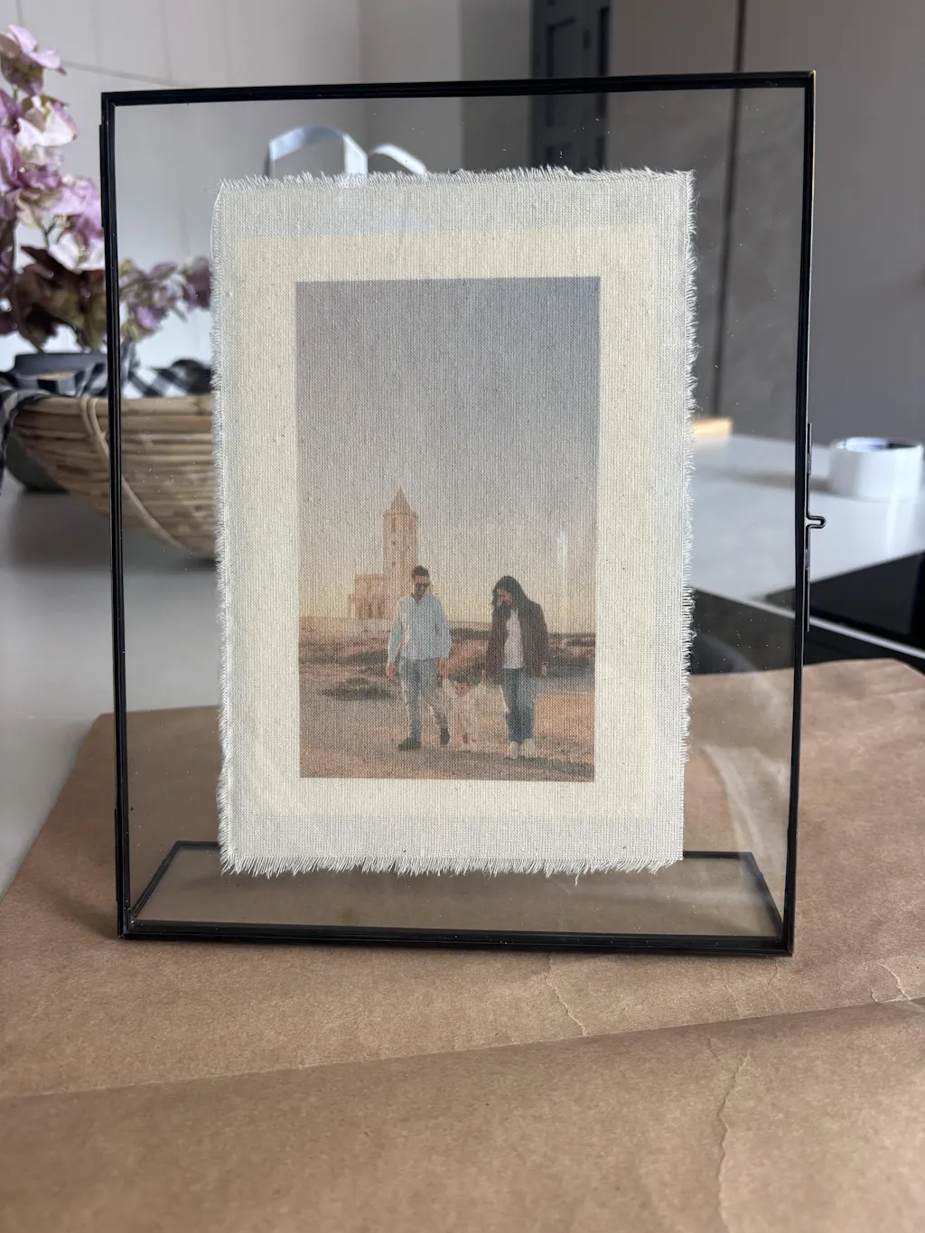 Convierte tus recuerdos en una foto en tela personalizada y un acabado natural. Las fotos están impresas en tela de algodón 100% mediante un proceso artesanal que realza cada imagen con una textura única y elegante.