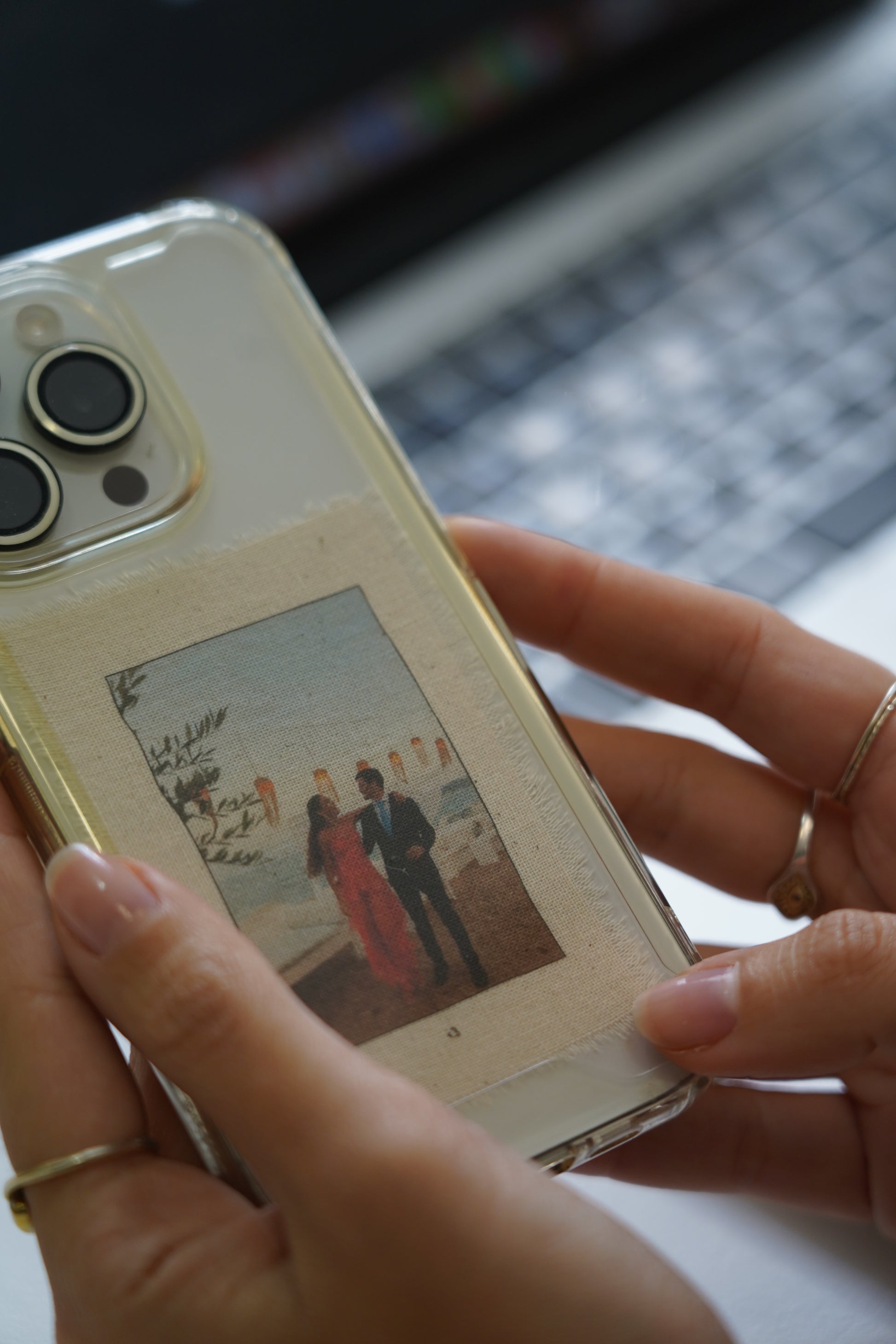 La lámina de revelado en tela para móvil, mide 9x6 cm, hecha de algodón 100%, transforma la carcasa de tu teléfono en una pieza única. Impresa con gran detalle, la tela suave y natural le da un toque auténtico.